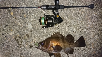 ロッド購入後、ファーストフィッシュが良型メバルでした。
