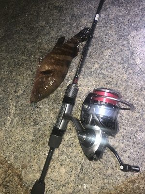 根に潜ろうとしたが、ロッドの感度が良く、すぐに根魚とわかったために、潜られずに済んだ。