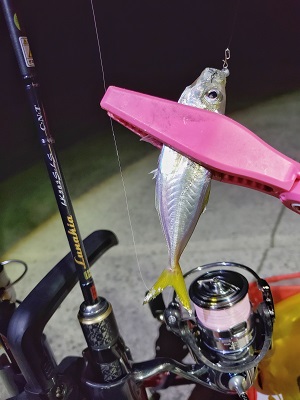 以前に5cmの極小アジに遊んでもらった時も、小さなアジのアタリを感じて、掛けて、バラしにくい。