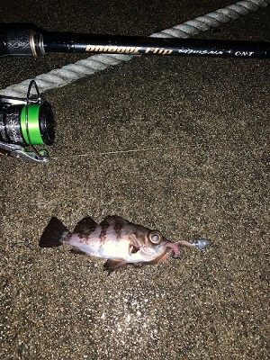 エギング帰りに漁港に立ち寄り、ジグヘッドにイソメをつけて探りを入れるとフワッと小さな違和感が手元に。