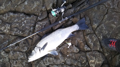 大荒れの磯でこのサイズを制して、波を使ってズリ上げることができました。