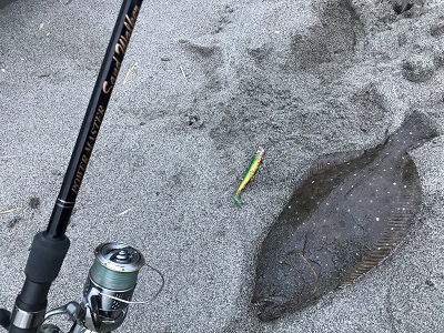 天龍ロッドデビューです。引き波にもロッドが綺麗にしなり危なげなくキャッチできました。