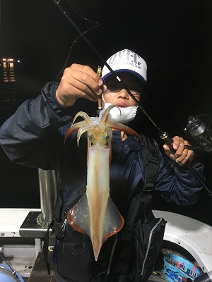 潮が緩く釣りやすい日でした。ボトムで鉛スッテをフォールさせ、シェイクさせて乗ってきてもらいました。