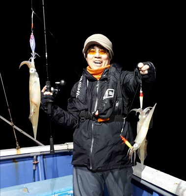 良型ヤリイカやメタボマイカがトリプルヒットしてもロッドのしなやかさと粘りで安心の愛竿です。