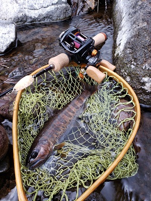 取り回しの良いショートベイトロッドは源流釣行の新しい相棒です。