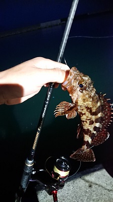 ここの岸壁はヘチ際にカサゴが着いていますが、7.6ftのライトゲームロッドで良形が掛かると