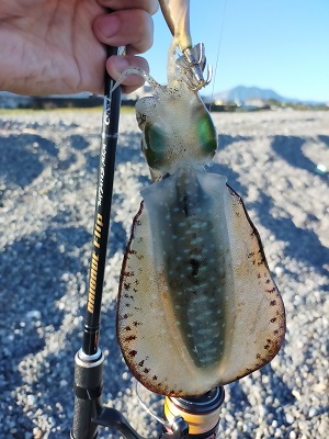 ・エギはヤマシタのエギ王Kの軍艦グリーン3号、シンカーは10g)