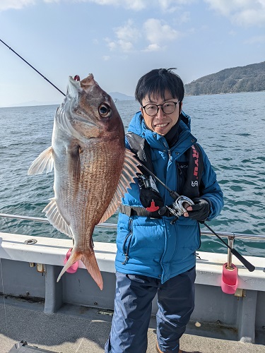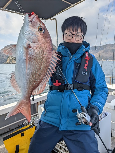 今春に発売する新型タイラバロッド『レッドフリップ』を持って挑みます。