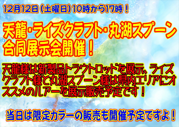 来て 見て 触ってください。 イベント X Facebook はてブ Pocket LINE コピー 2015.12.092025.10.01 今週末、12月12日(土) 上州屋キャンベル宇都宮店様にて トラウト用品を集めた展示会が開かれます。 弊社も出展させて頂きます。 新製品のトラウトロッド 『レイズ・スペクトラ』も展示する予定です。 ぜひ、来て 見て 触って下さい! JUGEMテーマ:フィッシング