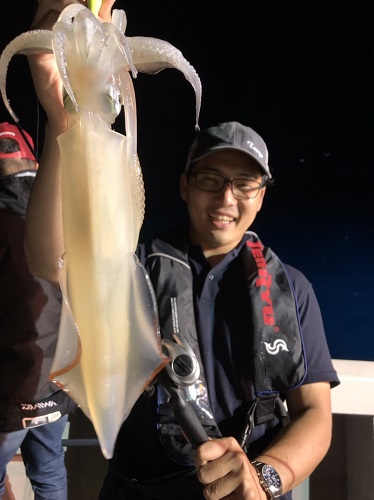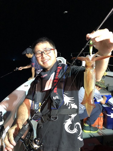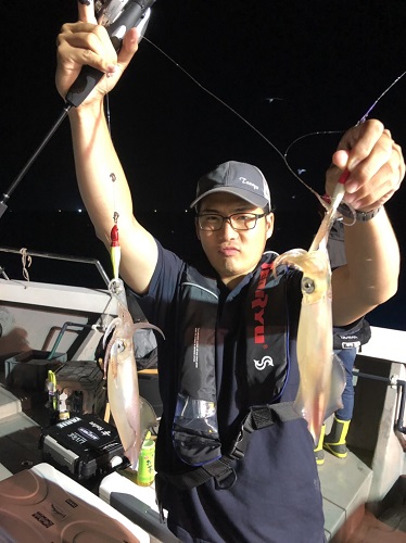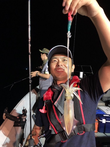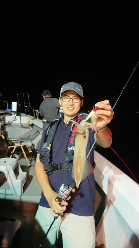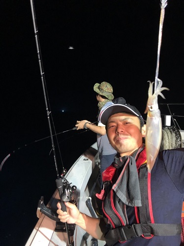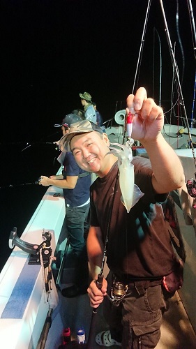 日が沈み、8時を過ぎた頃から20m付近でもマイカが釣れ始めました。