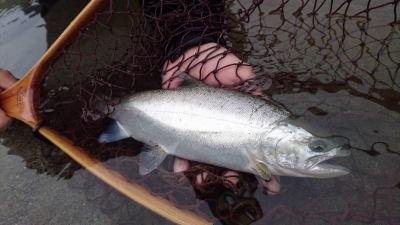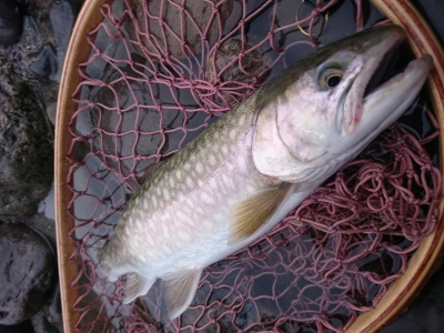 今回は本流初挑戦にして尺アマゴをキャッチしたらしい。