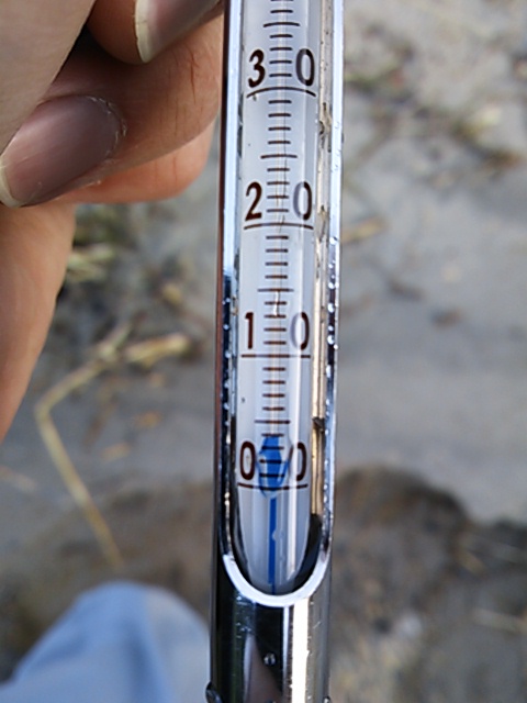 水温を計ると4℃…。