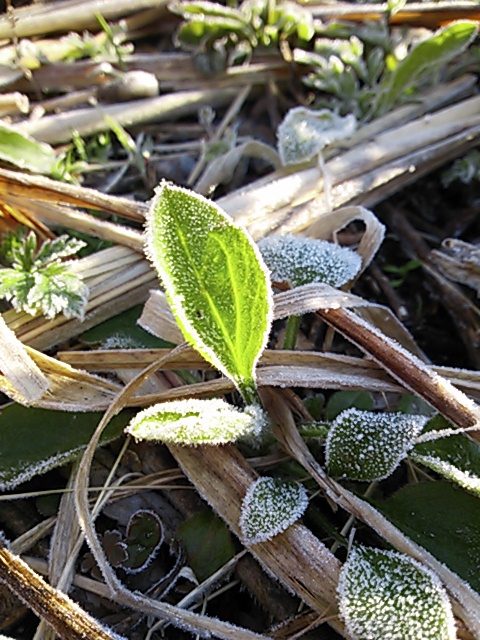 霜で草花に元気がない。