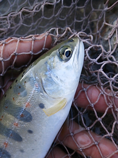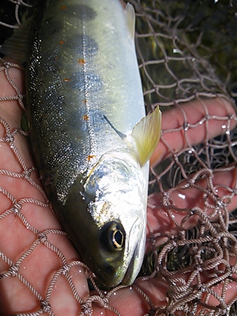 目ぼしい場所を効率よく探っていくと、アマゴが出てきてくれた。