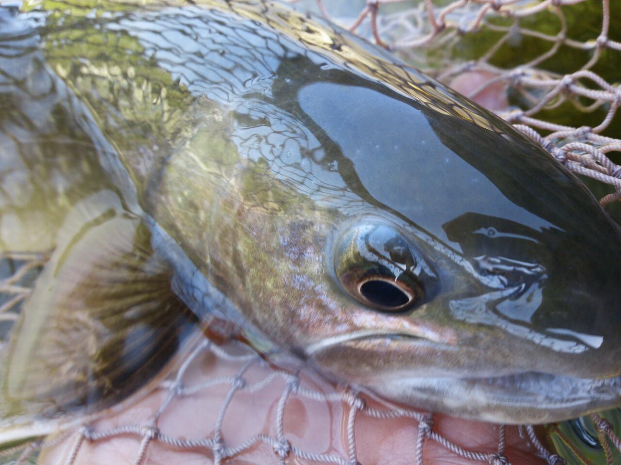ダウンストリームでミノーをユックリ見せて、
