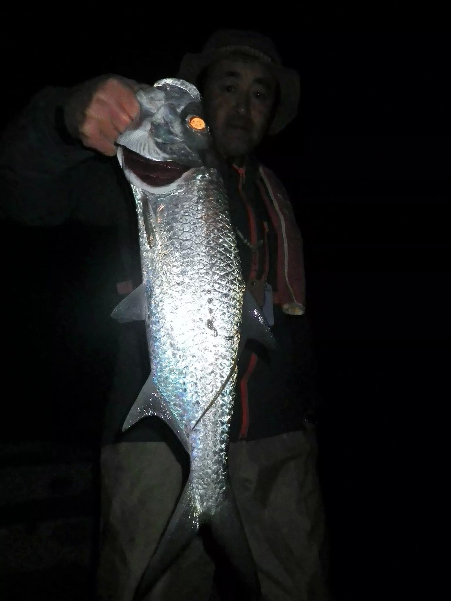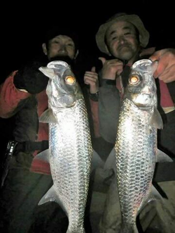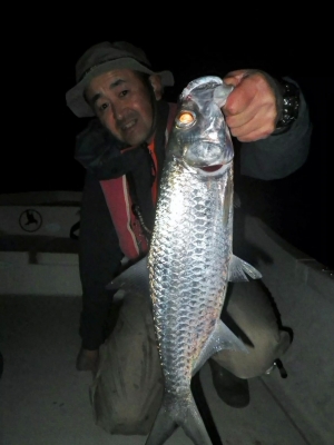 暗い海面にギンギンのターポンがヘッド&テールで出た~!