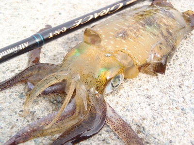 胴長で20㎝クラスのアオリイカが釣れた。