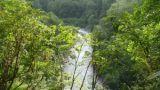 水面にも木が移り込み、全体が緑色の渓流となっていた。