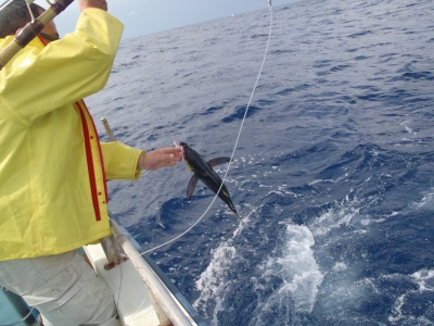 とりあえず、カジキの餌さとなる鰹とキメジを狙う。