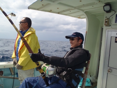 船長にカジキ狙いのタックルを用意して頂き、本命を狙い始めた。