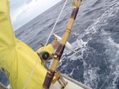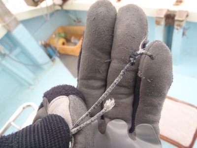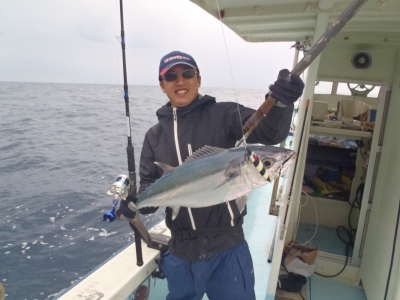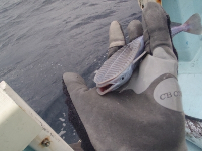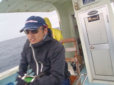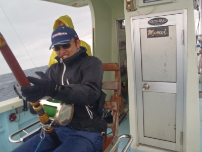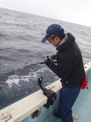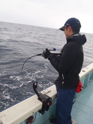 船長のご厚意でジギングタックルに、タコベイトを付けて流してみる。