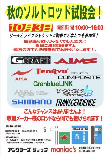 10月3日(日)に マニアックス様  主催の試投会が開催されます。
