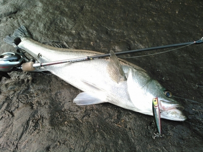 キャッチしたのは70cmオーバーのヒラスズキを連想させるような、体高の素晴らしいシーバスでした!!