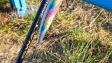 グラス素材のチューブラ状(中空)の穂先に、低弾性カーボンに徐々に移り変わる