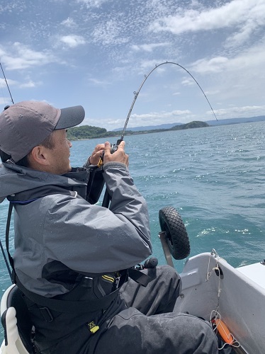 私達は潮通しの良い岬を過ぎて、湾奥の20mラインを流しながら進んでいると、